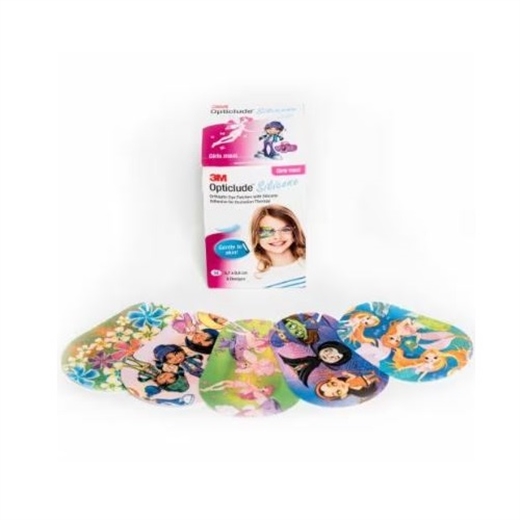3M Opticlude Silicone er et ovalt plaster til behandling af skelende øjne.