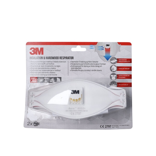 3M 9332+ Sikkerhedsmasken er CE-mærket og opfylder kravene i EN149:2001 og er klassificeret FFP3.