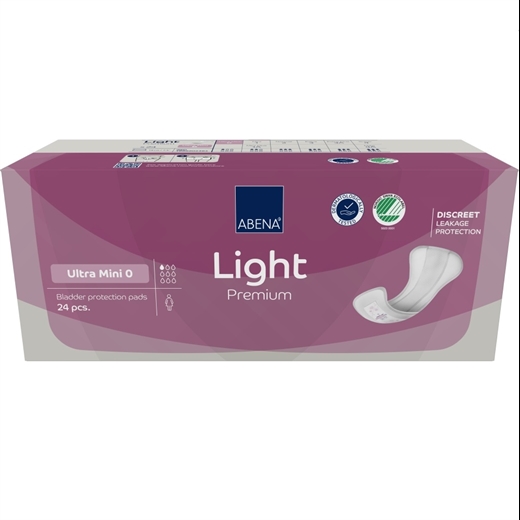ABENA Light er en førsteklasses serie af anatomisk formede bind med selvklæbende tape til let til moderat inkontinens. Den effektive kerne med Top-Dry teknologi giver hurtig absorption og tør overflade, selv efter gentagne vandladninger, og sikrer optimal hudbalance og øger komforten. De fuldt åndbare produkter er enten forsynede med liggende lækagebarrierer eller har en skumkant og/eller form, som sikrer mod lækager. Kombinationen af de 3 funktioner – åndbarhed, beskyttelse og Top-Dry – hjælper med at beskytte huden og opretholde en naturlig hudbalance. Odor-systemet minimerer risikoen for ubehagelige lugtgener.