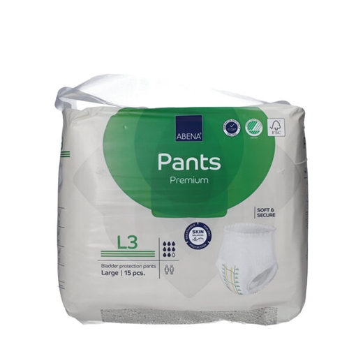 Abena Pants Premium L3 er en selvsiddende bukseble til svær urin- og/eller afføringsinkontinens.