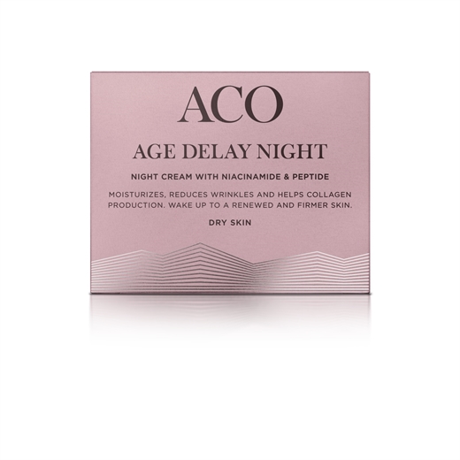 ACO Age Delay Night Cream Dry Skin med parfume er en rig, nærende og effektiv anti-age natcreme til tør hud.