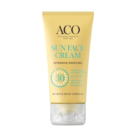 ACO Sun Face Cream SPF30 er en intenst fugtgivende ansigtscreme med høj beskyttelse, der giver øjeblikkelig beskyttelse mod solens UVA- og UVB-stråler.