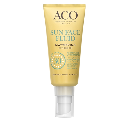 Hvis du har urenheder og har tendens til at have skinnende hud, kan du bruge ACO Sun Face Mattifying SPF50.