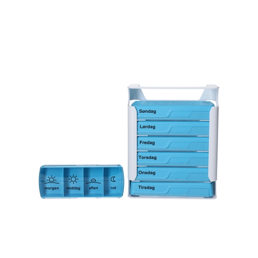 Rummet til venstre (morgen) er noget større, så man altid kan se, hvordan låget skal sættes på dagsboksen.