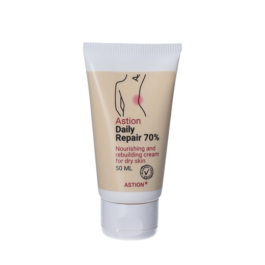 Astion Daily Repair Cream 70 % er en ekstra nærende og genopbyggende creme til meget tør og skadet hud.