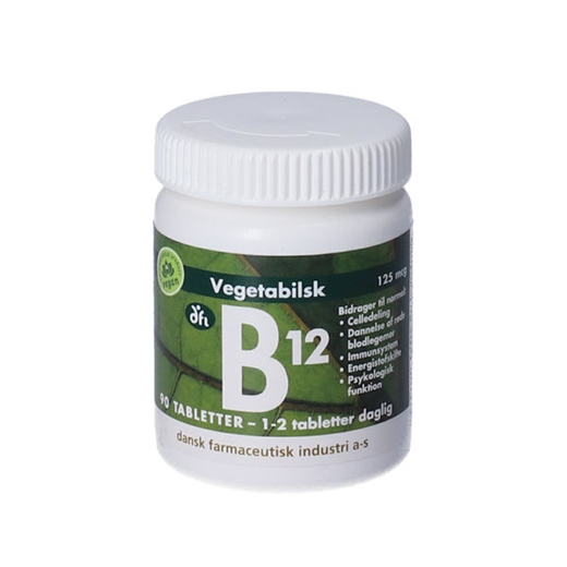 B-12 vitamin tabletter er et kosttilskud indeholdende 125 mikrogram B-12 vitamin (methylcobalamin) pr. tablet.
