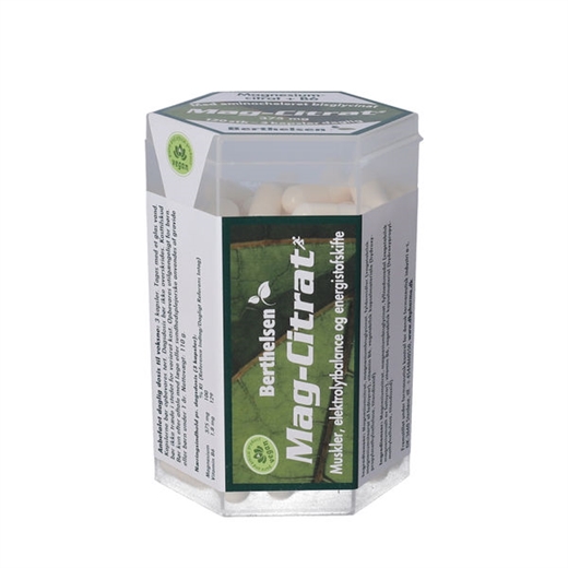 Berthelsen Mag-Citrat er et kosttilskud med letoptagelig magnesium og vitamin B6 (pyridoxinhydrochlorid).