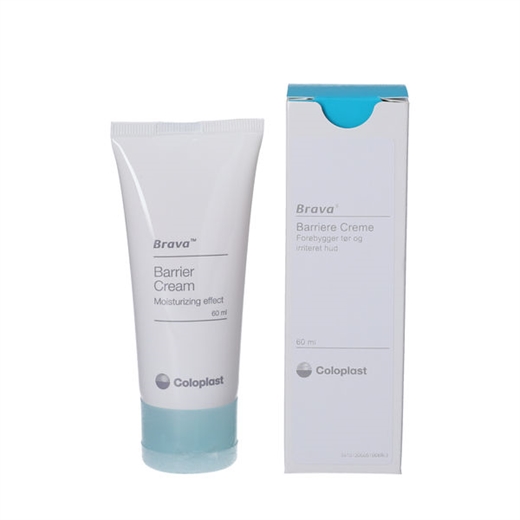 Brava Barriere Creme er en beskyttende barrierecreme, der afhjælper tør eller irriteret hud omkring stomien.