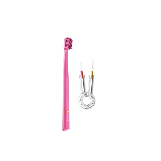 Hvis bakterierne i vores mund vokser ukontrolleret, kommer immunsystemet under stress. Styrk dit generelle helbred ved at rengøre dine tænder grundigt. Din Super Duo-pakke indeholder: en CS 5460 tandbørste og to prime mellemrumsbørster i størrelse 07 & 09 med en duo børsteholder.