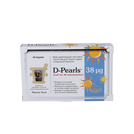 D-Pearls kapsler er et kosttilskud, der indeholder 38 mikrogram vitamin D.