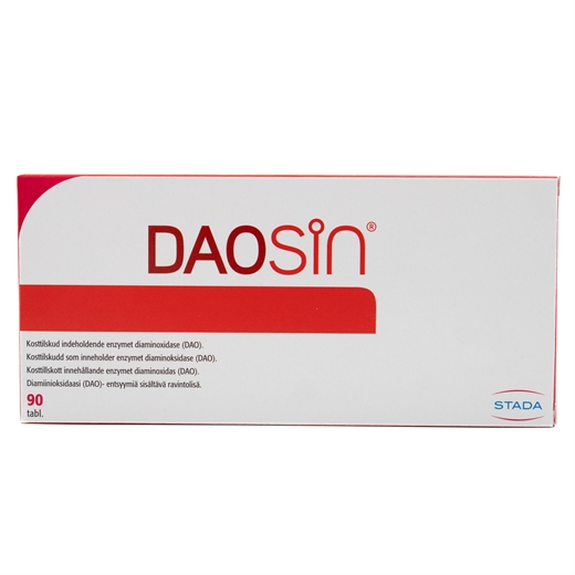 DAOSIN er et kosttilskud og bør ikke træde i stedet for en varieret og balanceret kost og sund livsstil. Den maksimale daglige dosis er 3 tabletter (svarende til 3 histaminholdige måltider per dag).