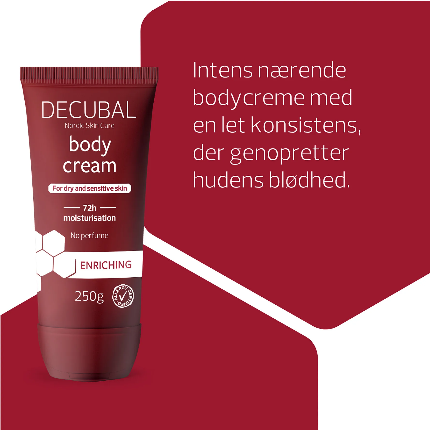 Decubal Body Cream er nem at påføre og meget behagelig i brug – selv på hud, der er stærkt udtørret eller beskadiget.