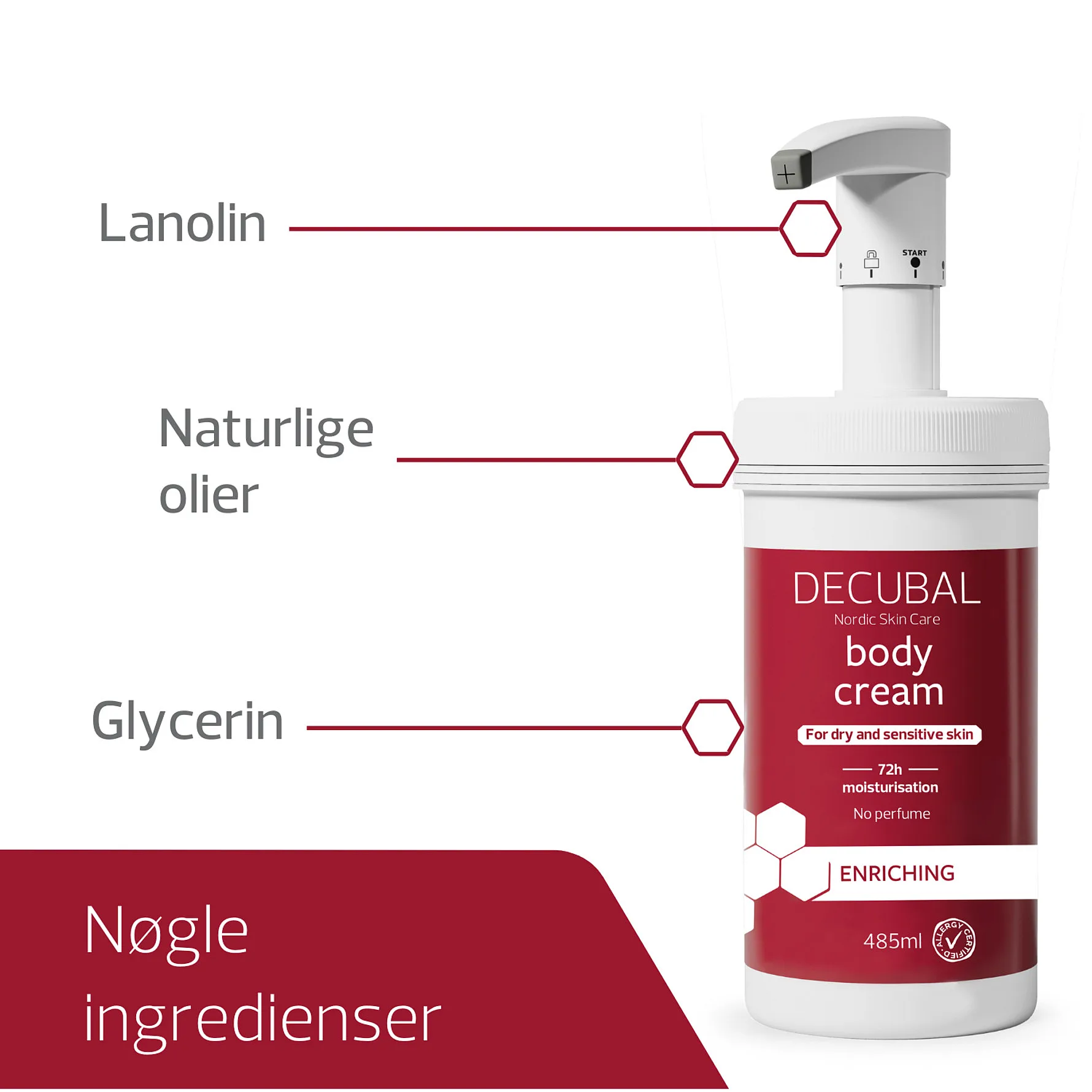 Decubal Body Cream er en nærende og fugtgivende creme, der er specielt udviklet til tør hud.