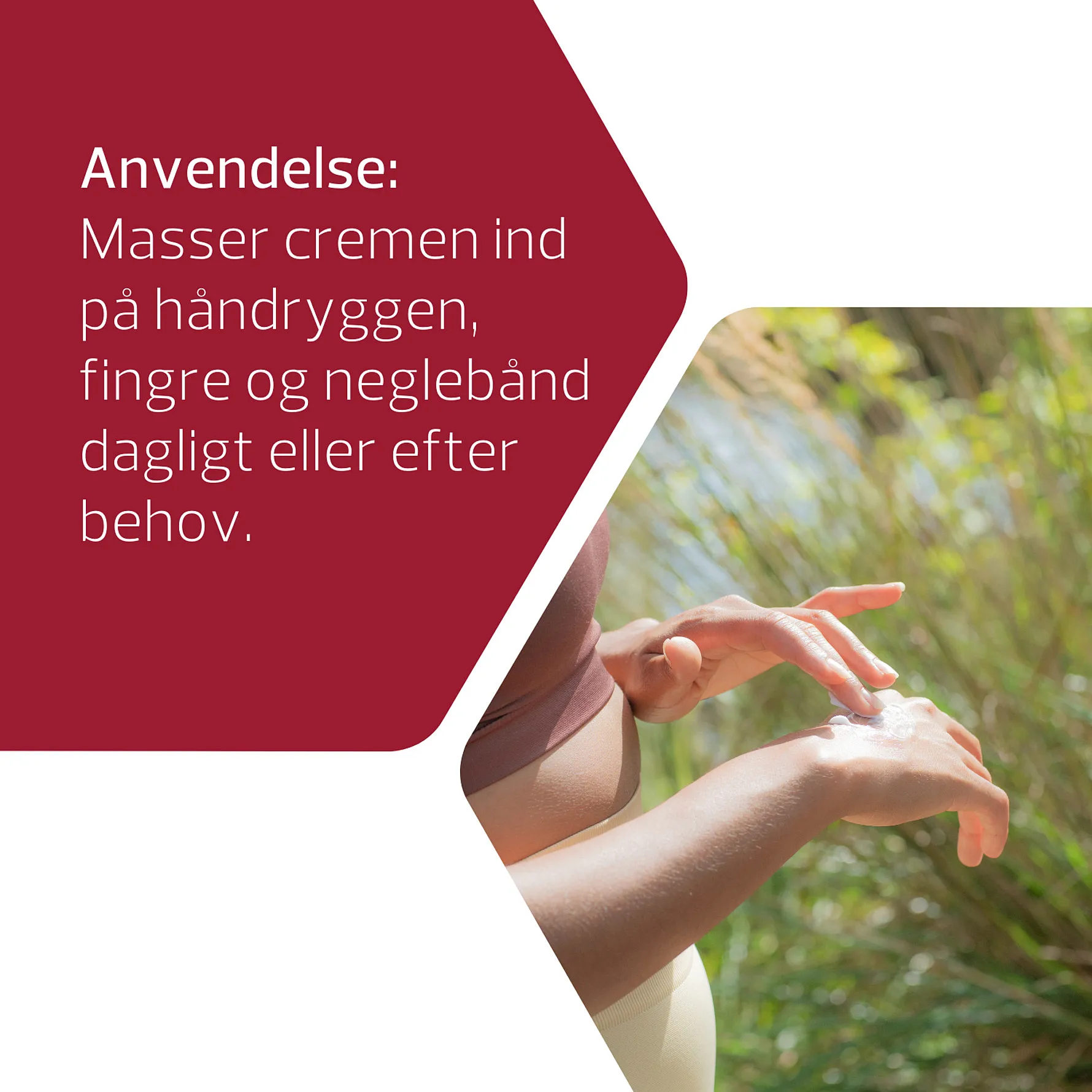 Den rige og nærende konsistens trænger hurtigt ind i huden og efterlader hænderne med en behagelig, gennemfugtet og ikke fedtet følelse. Ydermere hjælper cremen med at genopbygge og vedligeholde hudbarrieren.