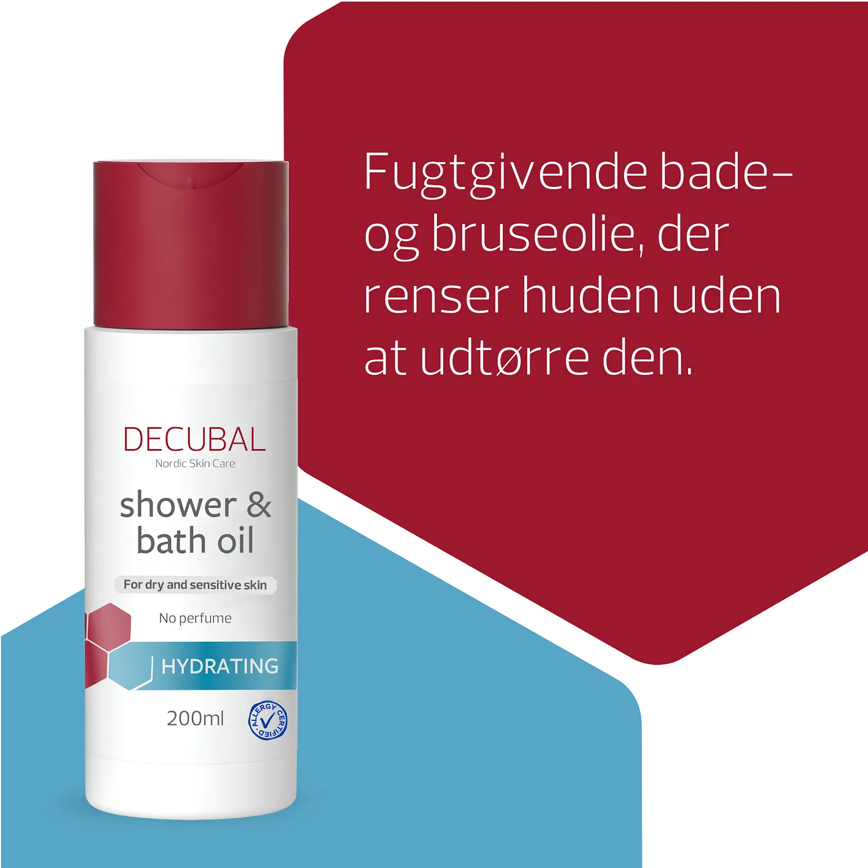 Decubal Shower & Bath Oil indeholder i stedet for sæbe meget milde vaskeaktive ingredienser og naturlige olier, der blødgør og plejer huden.