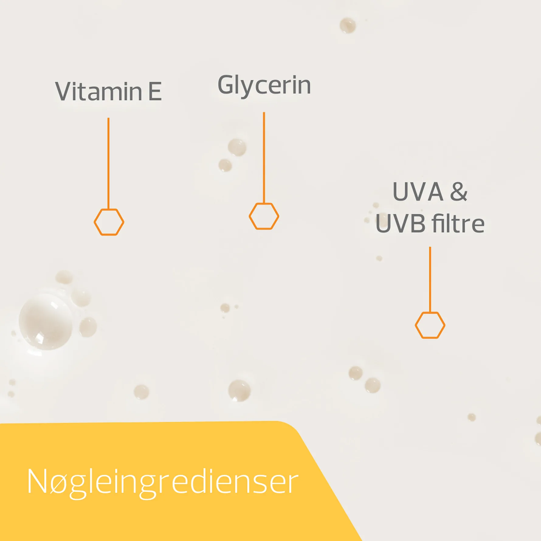 Beskytter mod UVB- & UVA stråler. Meget vandfast. Uden parfume.
