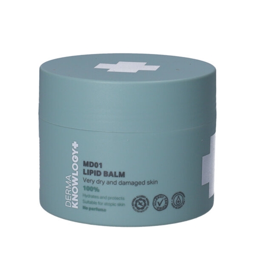 DermaKnowlogy MD01 Lipid Balm er en lipidcreme med maksimalt fedtindhold til pleje af meget tør og ekstrem tør hud.