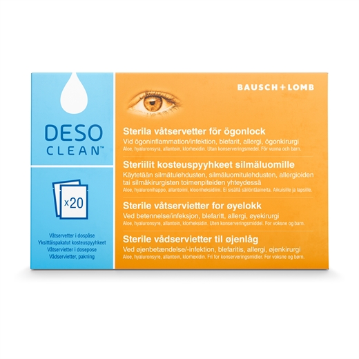 Desoclean™ er beregnet til topisk behandling af øjenlåg og øjenvipper både hos voksne og børn (+36 måneder), også ved forekomst af sekret forårsaget af allergi, inflammation og/eller infektioner som blepharitis og blepharoconjunctivitis af forskellige typer. Særligt anvendelig før og efter øjenkirurgi.