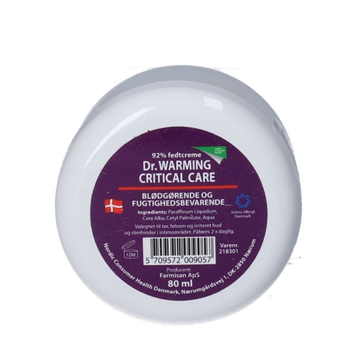 Warming Critical Care er en fugtbevarende og blødgørende fedtcreme til tør og sart hud. Fedtcremen er også velegnet til brug i intimområdet.