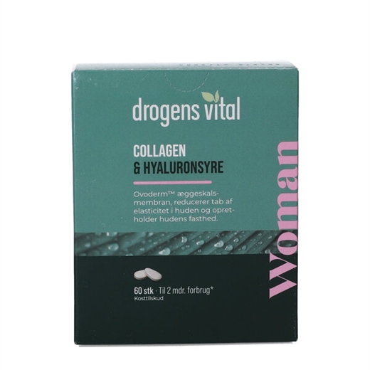 Drogens Vital Woman Collagen & Hyaluronsyre er et kosttilskud, der styrker hudens struktur og fugtbalance.