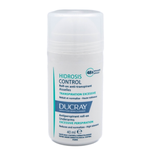 Ducray Hidrosis Control Roll-on reducerer og kontrollerer almindelig svedproduktion samt svedproduktion hos personer, der lider af hyperhidrosis. Den særlige formulering med tredobbelt virkning gør, at deodoranten absorberer fugt, opfanger lugt og renser huden. Deodoranten er effektiv i 48 timer og efterlader ingen mærker på tøjet. Roll-on kuglen gør det nemt at anvende den.