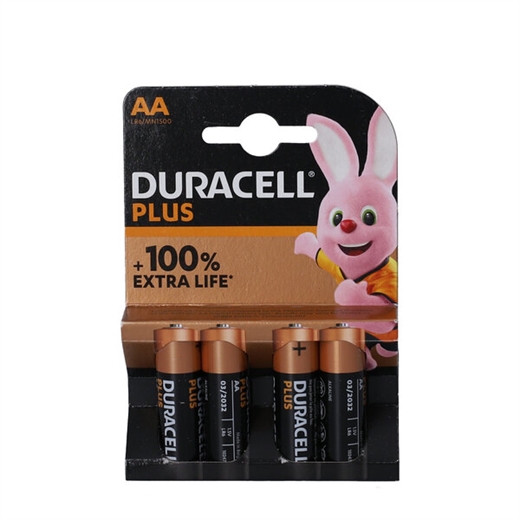Duracell Plus AA Alkaline Batterier med mange forskellige anvendelsesområder.