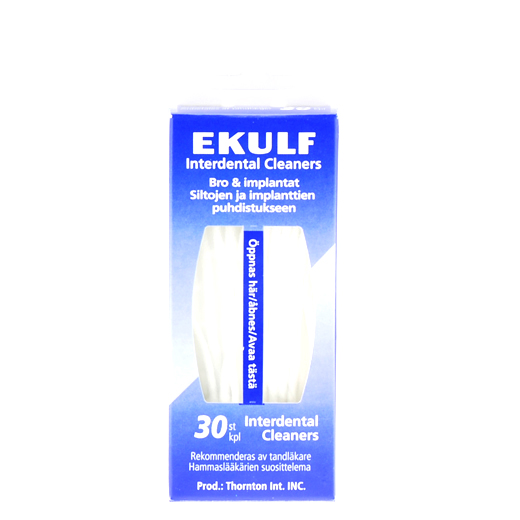 Ekulf Interdental Cleaners er en plast tråd med opflosset børstedel i midten. Tråden er specielt udformet til rengøring under broer og implantater. Tandpasta kan anvendes sammen med produktet ved rengøring.