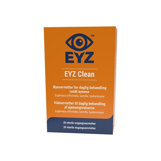 EYZ Clean anbefales også til daglig behandling af øjenomgivelserne hos personer, der er prædisponerede for forekomsten af forskellige typer af blefaritis og blefarokonjunktivitis. På grund af den særlige sammensætning er servietterne også velegnet til kontaktlinsebrugere.