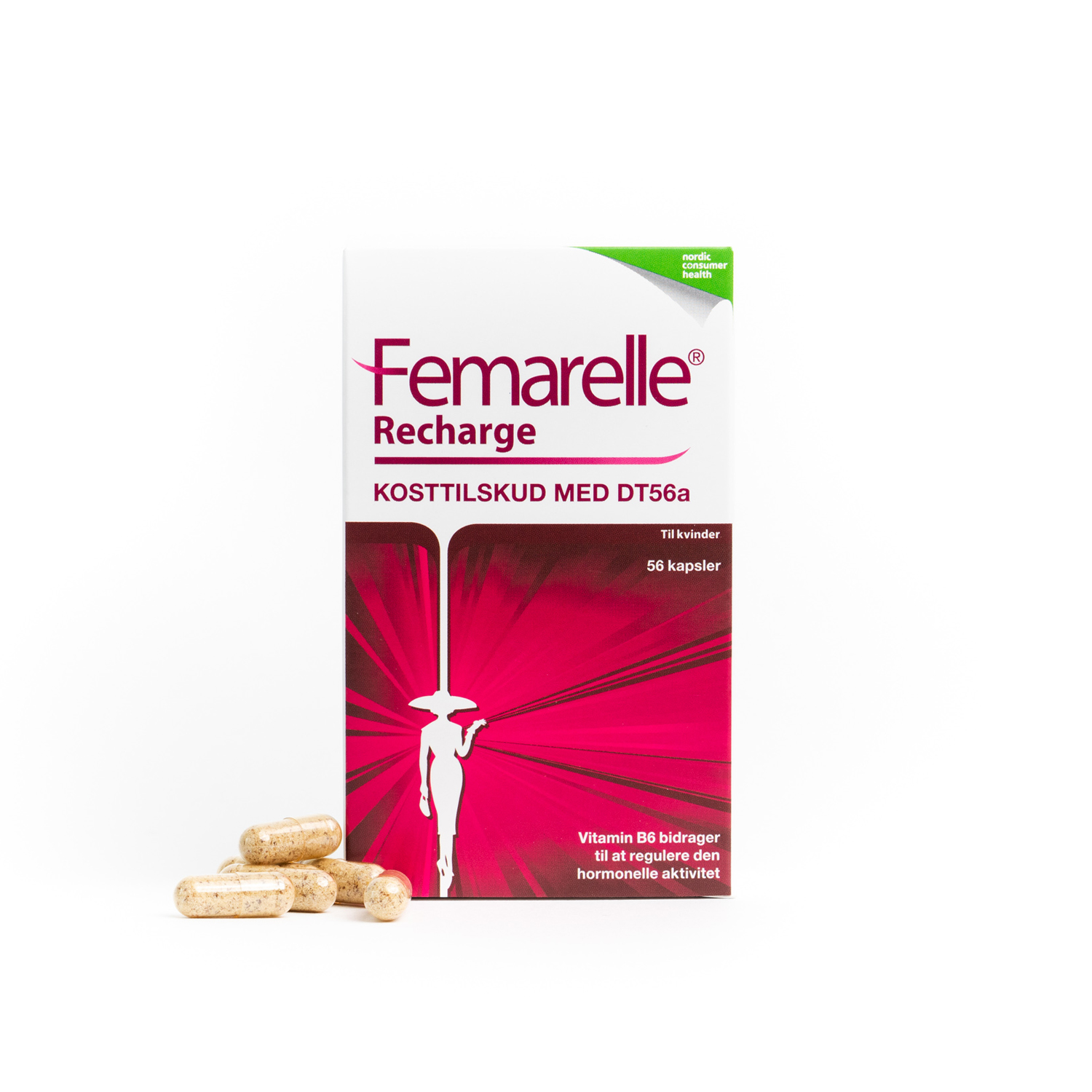 Femarelle Recharge indeholder DT56a-Glycine max, som er et fermenteret sojaekstrakt.