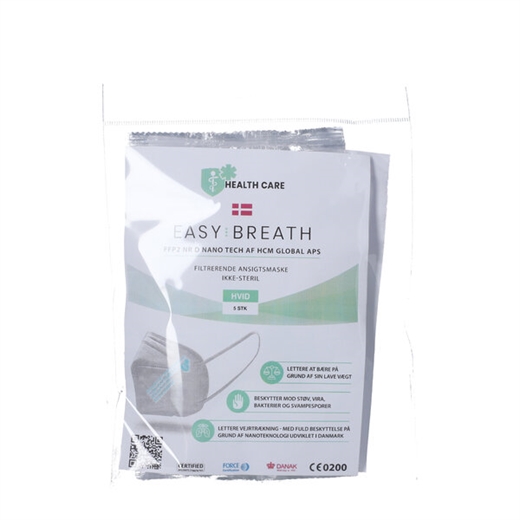 Easy Breath FFP2 NR D Nano Tech ansigtsmaske og åndedrætsværn er en CE-mærket ansigtmaske, der beskytter mod eksempelvis støv, vira, bakterier og svampesporer.