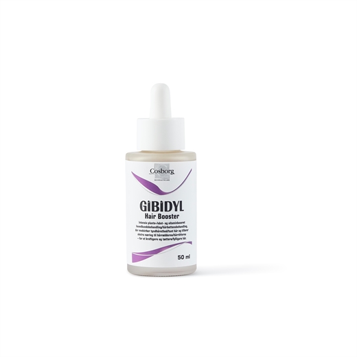 Gibidyl Hair Booster er en intensiv plante- og vitaminbaseret hovedbundsbehandling, som indeholder det særlige planteekstrakt fra ginkgo biloba (Cosborg® – PGB/25™), procapil® – et patenteret hårstimuleringscomplex, som indeholder biotinyl-GHK (vitaminiseret protein), apigenin fra citrusfrugter og oleanolsyre fra olivenblade samt provitamin B5 og vitamin B3. Gibidyl Hair Booster modvirker tyndhårethed og tilfører ekstra næring til hårrødderne – for et kraftigere og tættere hår.
