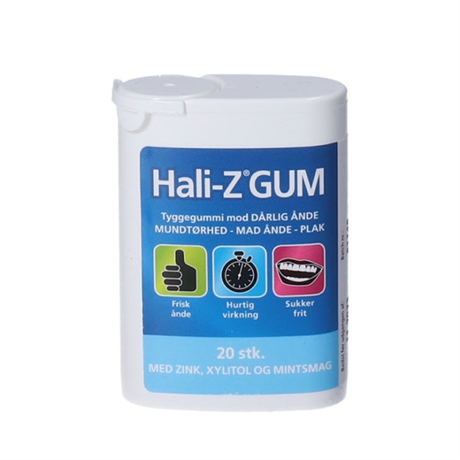 Hali-Z GUM er sukkerfri tyggegummi mod dårlig ånde, mundtørhed og plak.