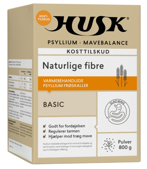 HUSK Psyllium Mavebalance indeholder naturlige fibre fra psyllium frøskaller. Frøskallerne indeholder 85% kostfibre. Psyllium frøskaller absorberer væske og danner en geléagtig masse, der hjælper med at holde din mave i gang.