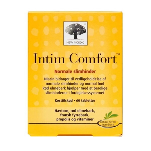 Slimhinderne er de membraner, som dækker mange af kroppens indre overflader. Slimhinderne findes i kønsorganer, øjne, næse, ører, mund og fordøjelsessystemet samt omkring kroppens indre organer såsom blære, lunger og nyrer. Gode velfungerende slimhinder er vigtige for et godt velbefindende. Intim Comfort™ tabletten er baseret på et kombinationsekstrakt af havtorn, rød elmebark og propolis. Tablettens indhold af niacin bidrager til at vedligeholde normale slimhinder. Rød elmebark er en kilde til mucilage, som støtter slimhinderne.