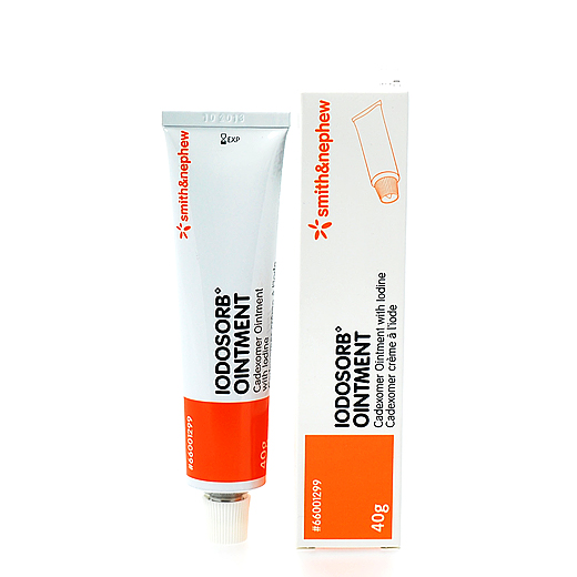 Iodosorb salven vil absorbere overskydende sårekssudat og nekroserester fra sårbunden samt reducere antal bakterier på såroverfladen.