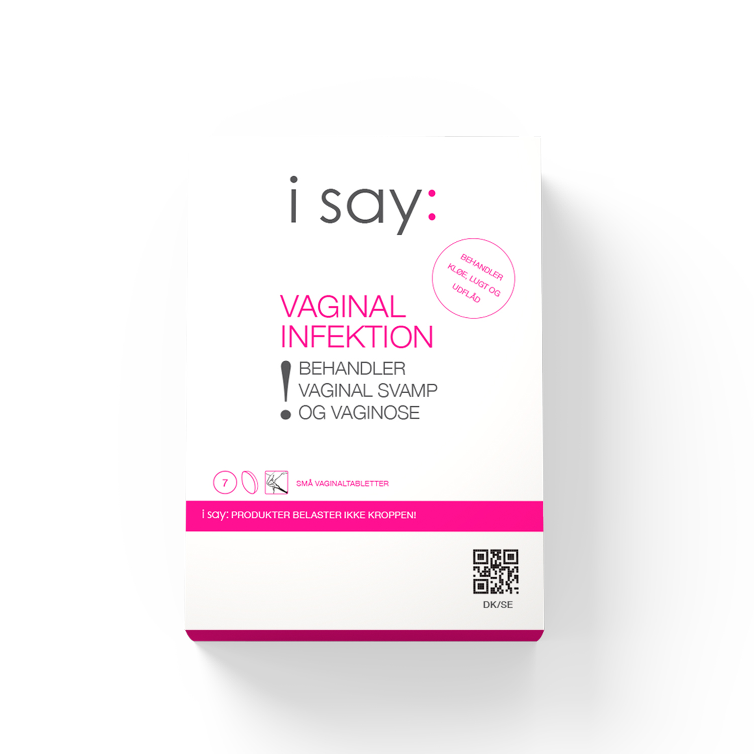 i say: Vaginal infektion vaginaltabletter er et medicinsk udstyr til selvbehandling af vaginal svamp og bakteriel vaginose samt ubehag som udflåd, kløe, brændende fornemmelse og lugt.