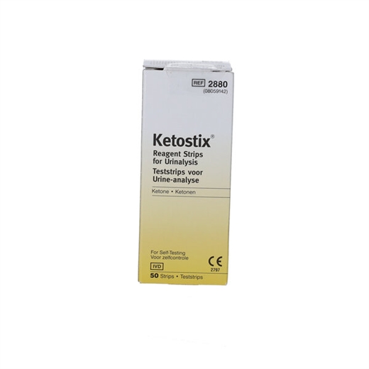 Ketostix Reagensstrimler anvendes til at måle ketonstoffer (aceteddikesyre) i urinen.
