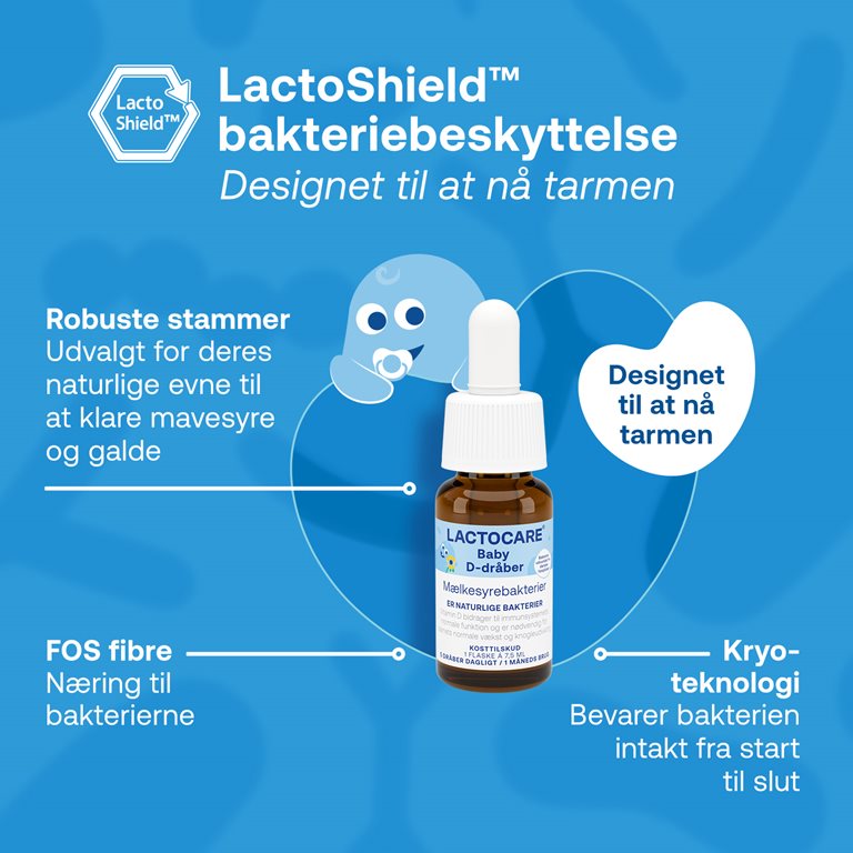 Lactocare BABY er sammensat af 2 forskellige mælkesyrebakteriestammer.