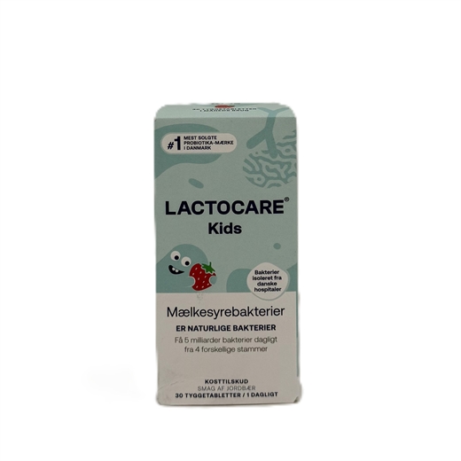 Lactocare KIDS Tyggetabletter er et kosttilskud med mælkesyrebakterier til børn fra 3 år.