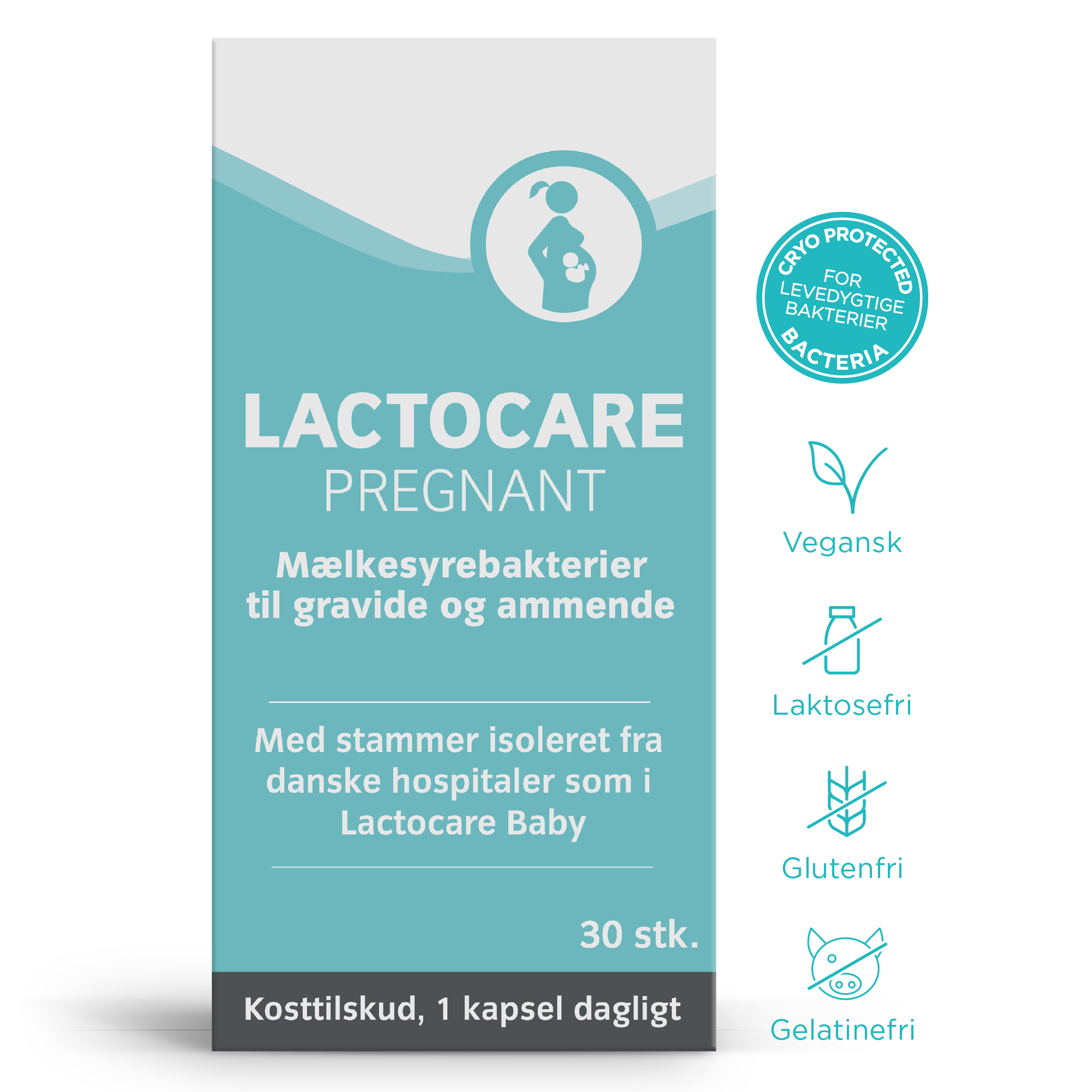 Lactocare PREGNANT er et kosttilskud med mælkesyrebakterier til gravide og ammende.