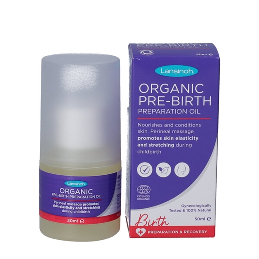 Lansinoh Organic Pre-Birth Preparation Oil nærer og blødgør huden i mellemkødet – partiet mellem kvindens ydre kønsdele og endetarmens åbning.