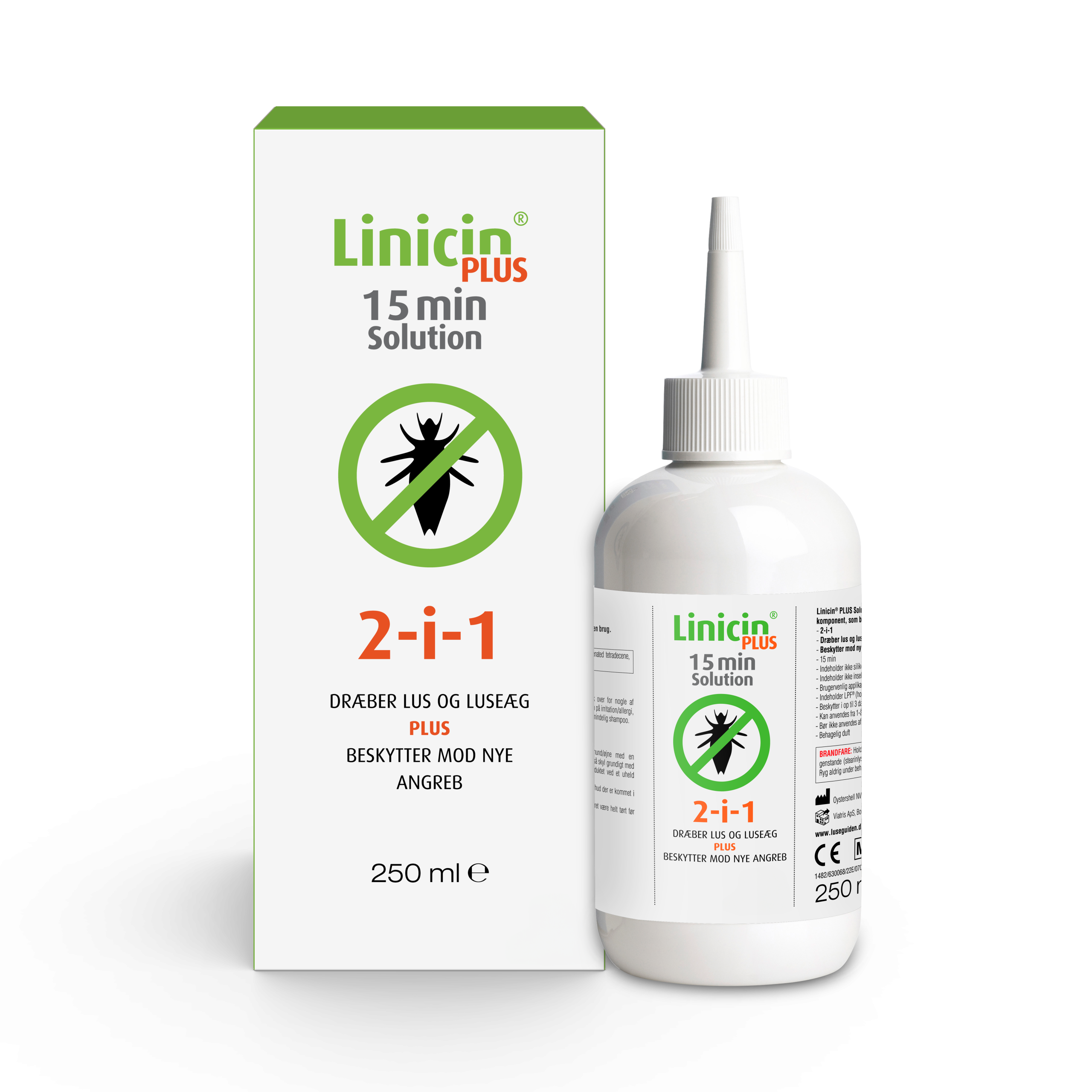Linicin Plus 15 min Solution er et lusemiddel med dobbeltvirkende effekt.