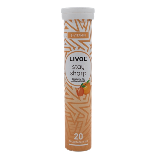 Livol Stay Sharp er et kosttilskud, der bidrager til en normal mental ydelse og psykologisk funktion samt en normal funktion af nervesystemet. Beriget med pantotensyre, tiamin, niacin, biotin samt B6- og B12-vitaminer, dette kosttilskud tilfører din krop en masse vigtige virkninger. Brusetabletterne er nemme at opløse i et glas vand. Er desuden yderst velsmagende med en smag af fersken og abrikos.