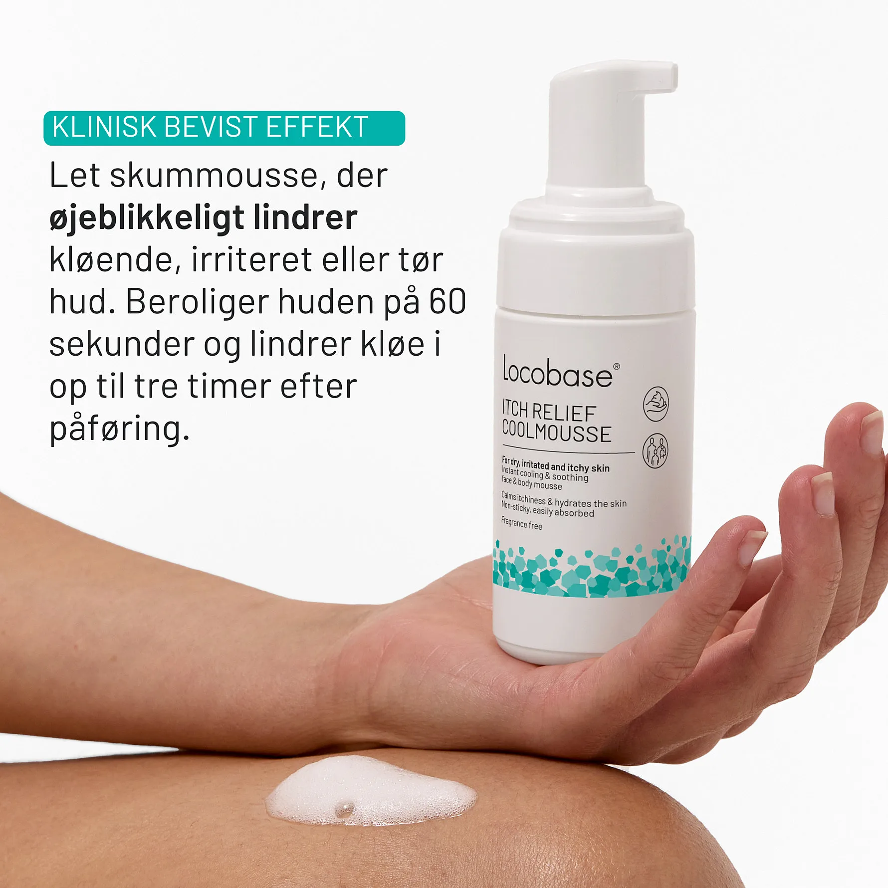 Locobase Itch Relief Mousse er en kløestillende og fugtgivende mousse til tør, irriteret og kløende hud.