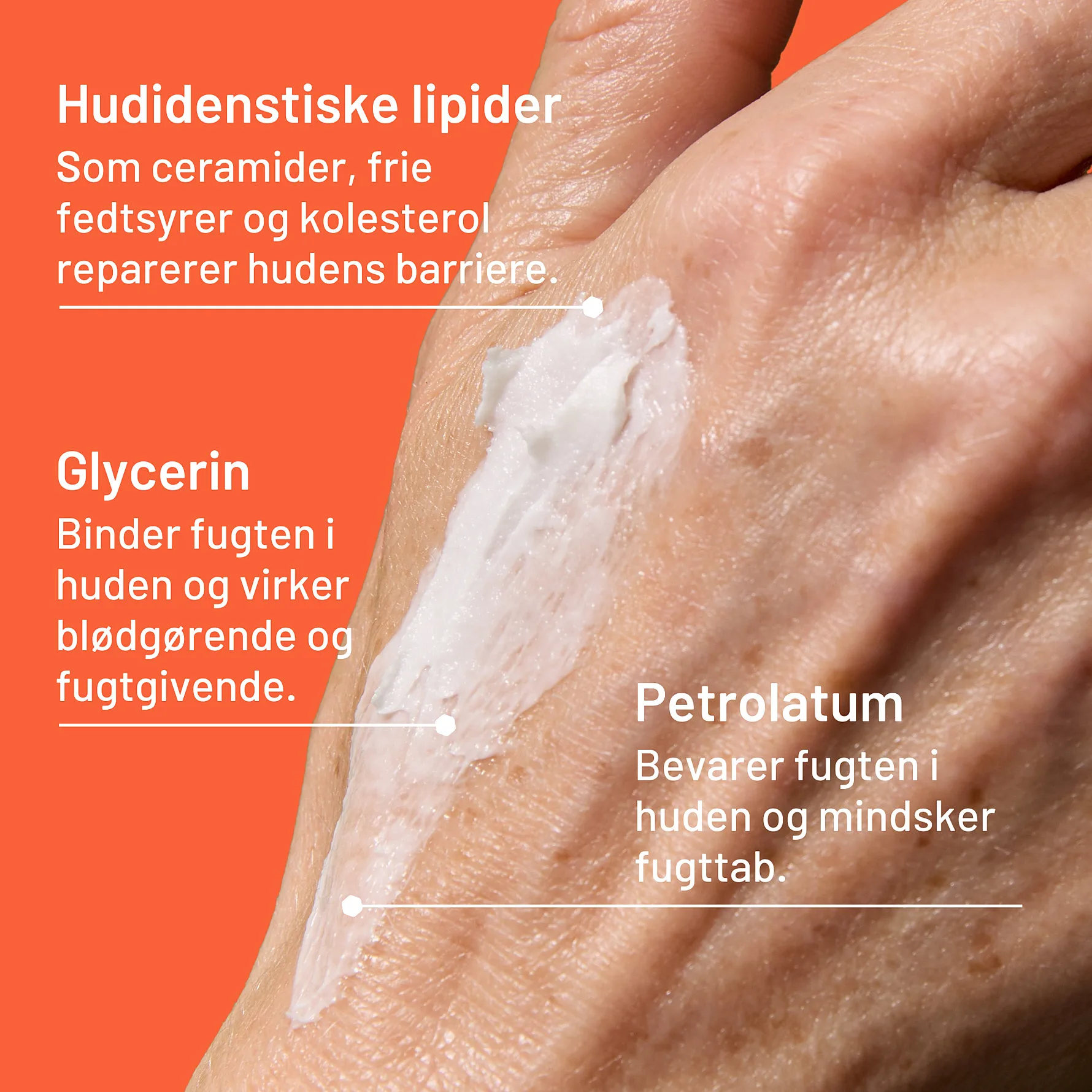 Locobase Repair tilfører hudidentiske barrierefedtstoffer og reparerer aktivt den skadede hud, hvorved hudens egen reparationsproces fremskyndes.