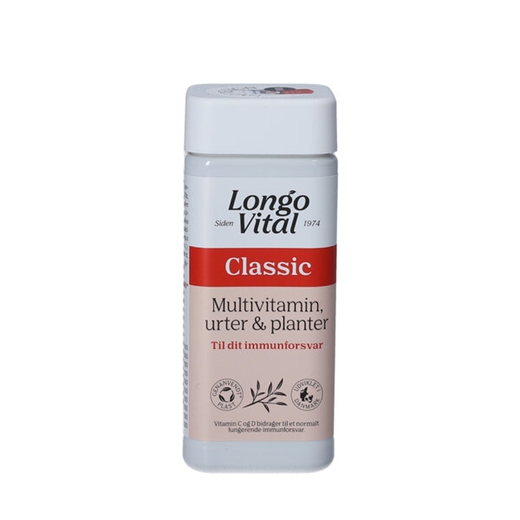 LongoVital Classic er et kosttilskud, der indeholder vitaminer og 6 udvalgte urter – rosmarinblad, paprika, græskarkerner, pebermynteblad, røllikeblomst og hvidtjørnblad og –blomst.