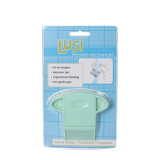 Lusi er en geanvendelig tættekam med ergonomisk håndtag til fjernelse af lus. Kammen kæmmer tæt og er let at rengøre.