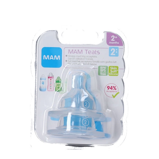 Mam Teats flaskesut størrelse 2, der egner sig til børn fra 2 måneder.