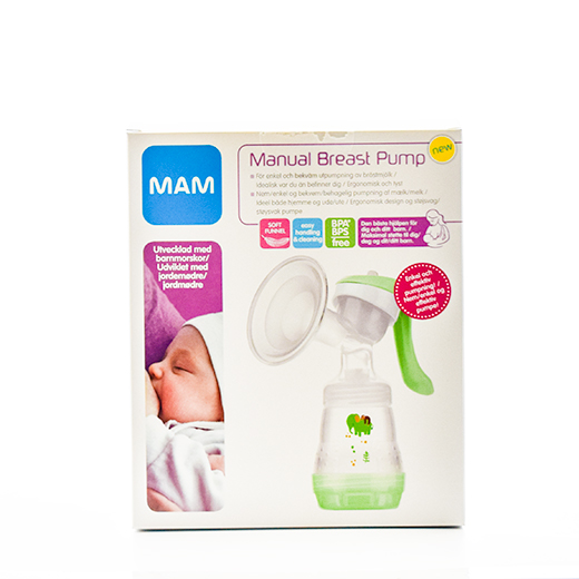 MAM´s manuelle brystpumpe har et funktionelt design og er behagelig at bruge.