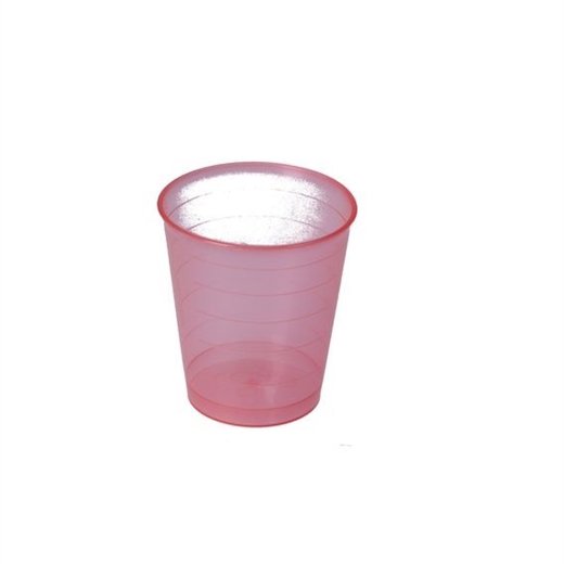 Medicinbæger (medicinmål) i rød/transparent plast med graduering.